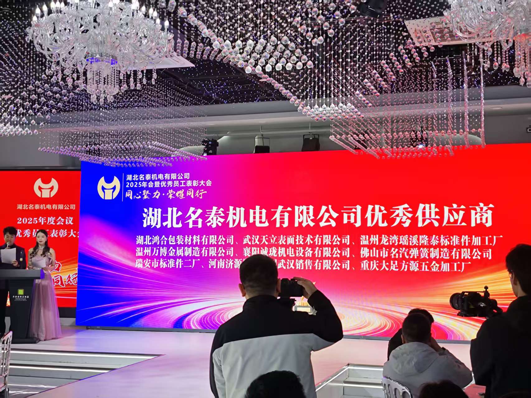 大会现场,湖北名泰机电有限公司对过去一年来在合作中表现突出的优秀员工、优秀供应商进行了隆重表彰,我司凭借长期以来的稳定合作、严苛品控与贴心服务,成功斩获“优秀供应商”荣誉,这既是对双方25载携手同行的高度认可,也是对我司综合实力的充分肯定。